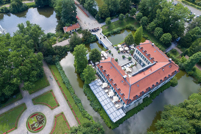 Schloss Berge mit Blick auf die Sommerterrasse